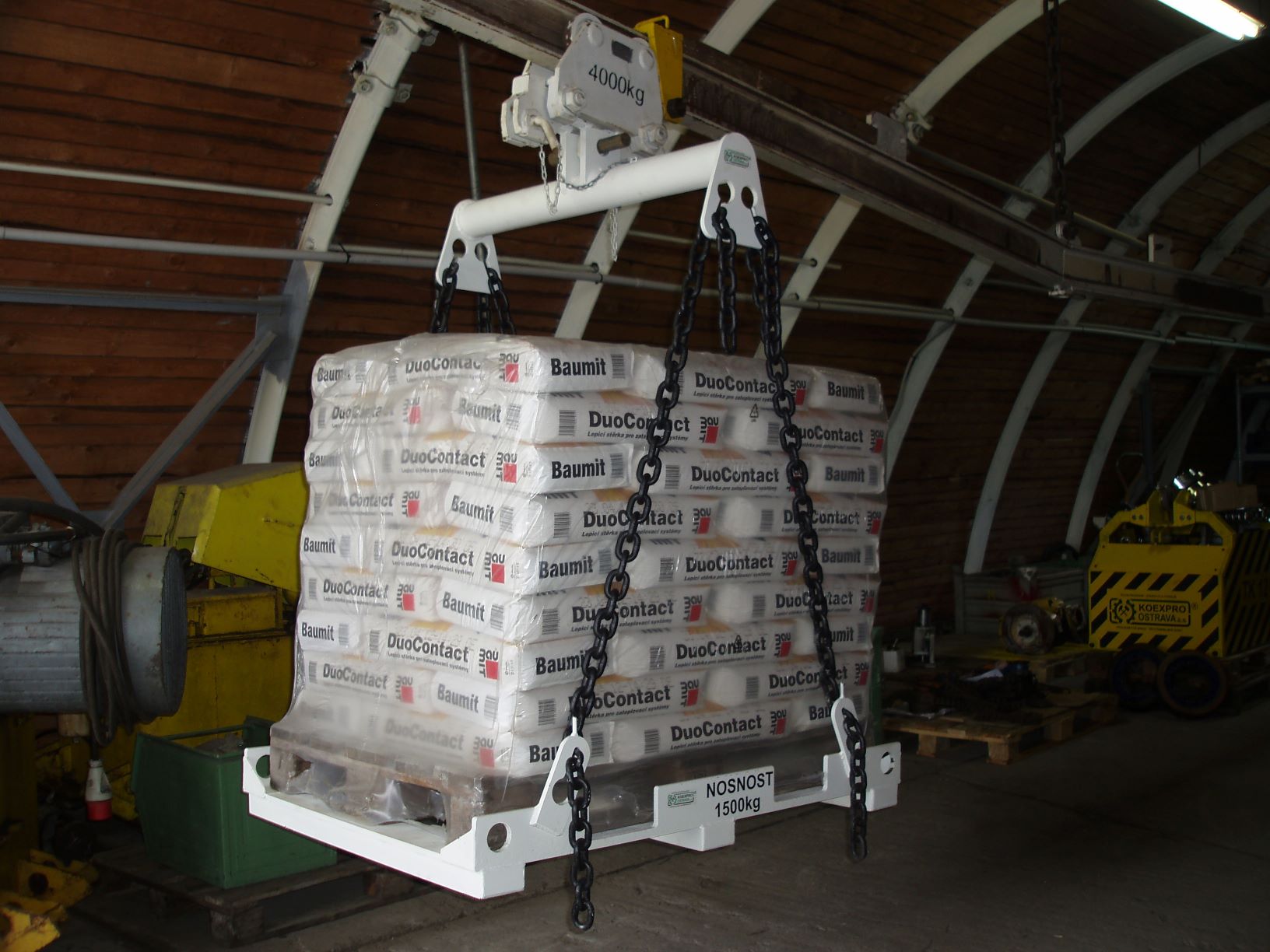 Závěsný nosič paletový ZNP 1500 je určen pro uložení a přepravu ISO palet 800 x 1200 mm do hmotnosti 1500 kg. Nosič je uzpůsoben k přepravě na závěsné dráze I 155 a svými rozměry také umožňuje přepravu na klanicových vozech se šířkou větší než 950 mm.