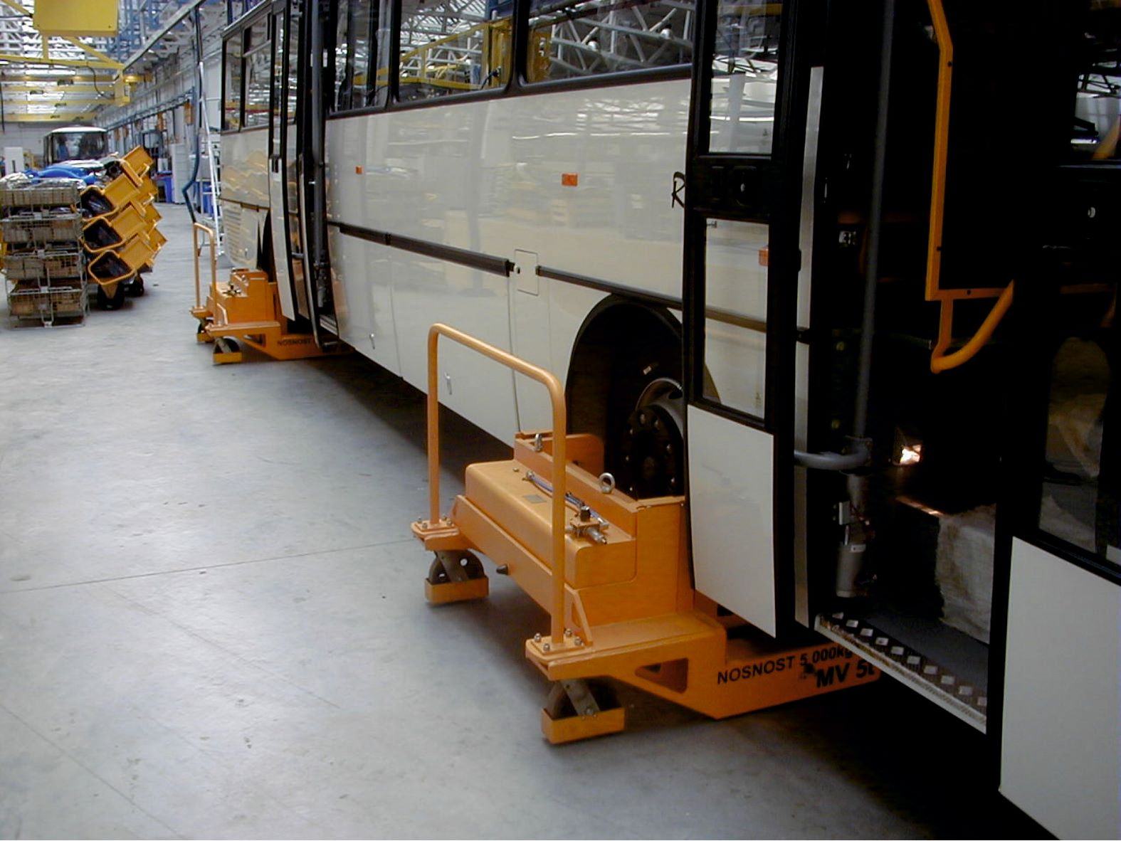 Manipulační vozík MV 5 t (dále jen vozík) je zařízení, které je určeno pro ruční přemísťování velmi těžkých kolových vozidel např. autobusů v kolmém směru na jejich podélnou osu při montáži v montážních linkách nebo při opravách. Přemístění vozidla se provádí pomocí příslušného počtu manipulačních vozíků přizvednutím za pojezdová kola a následným přetažením pomocí dvou speciálních ručně vedených tahačů TV 800K, zasunutých pod tyto vozíky. Tažný vozík TV 800K je rovněž součástí výrobního programu společnosti.