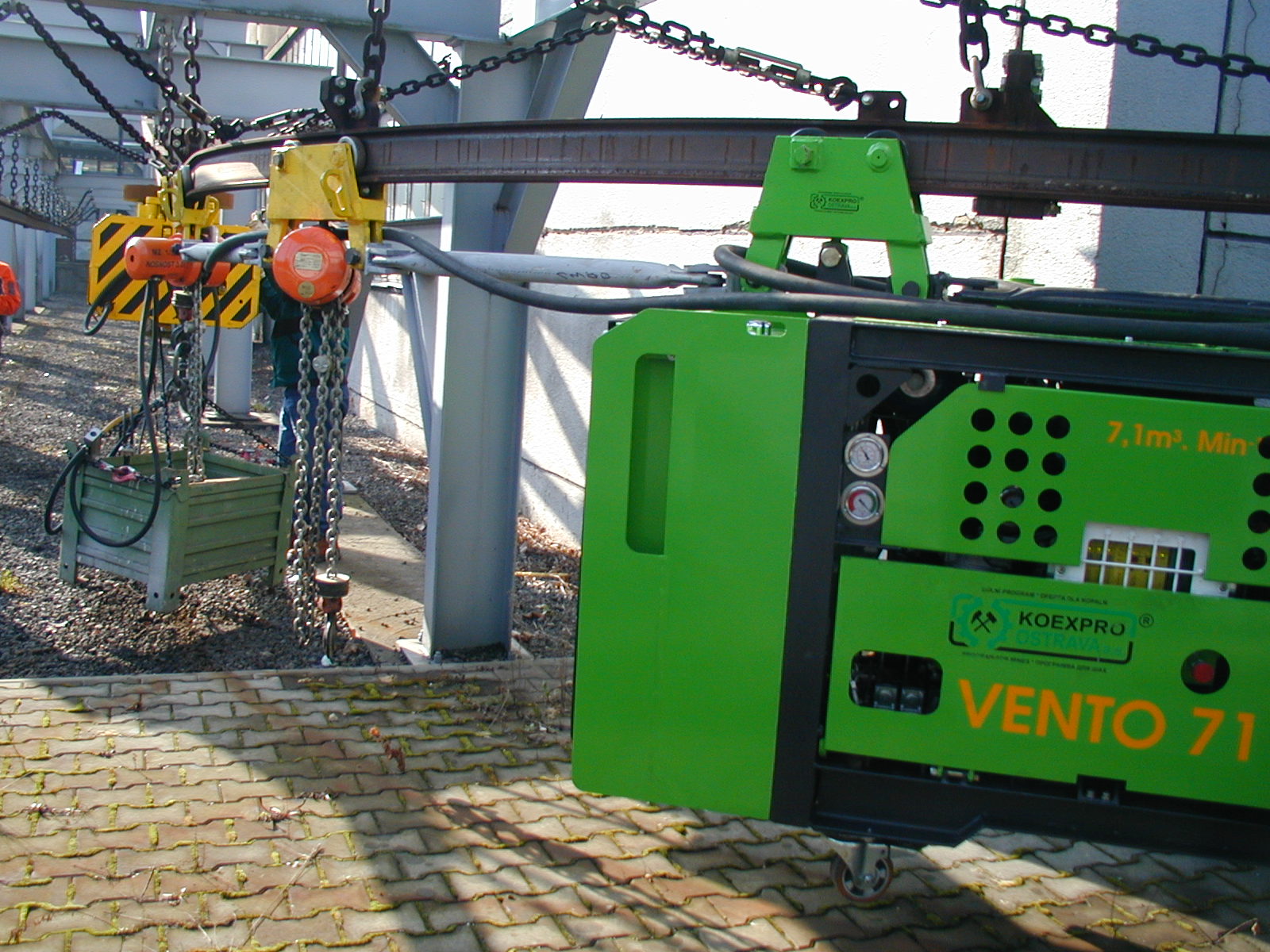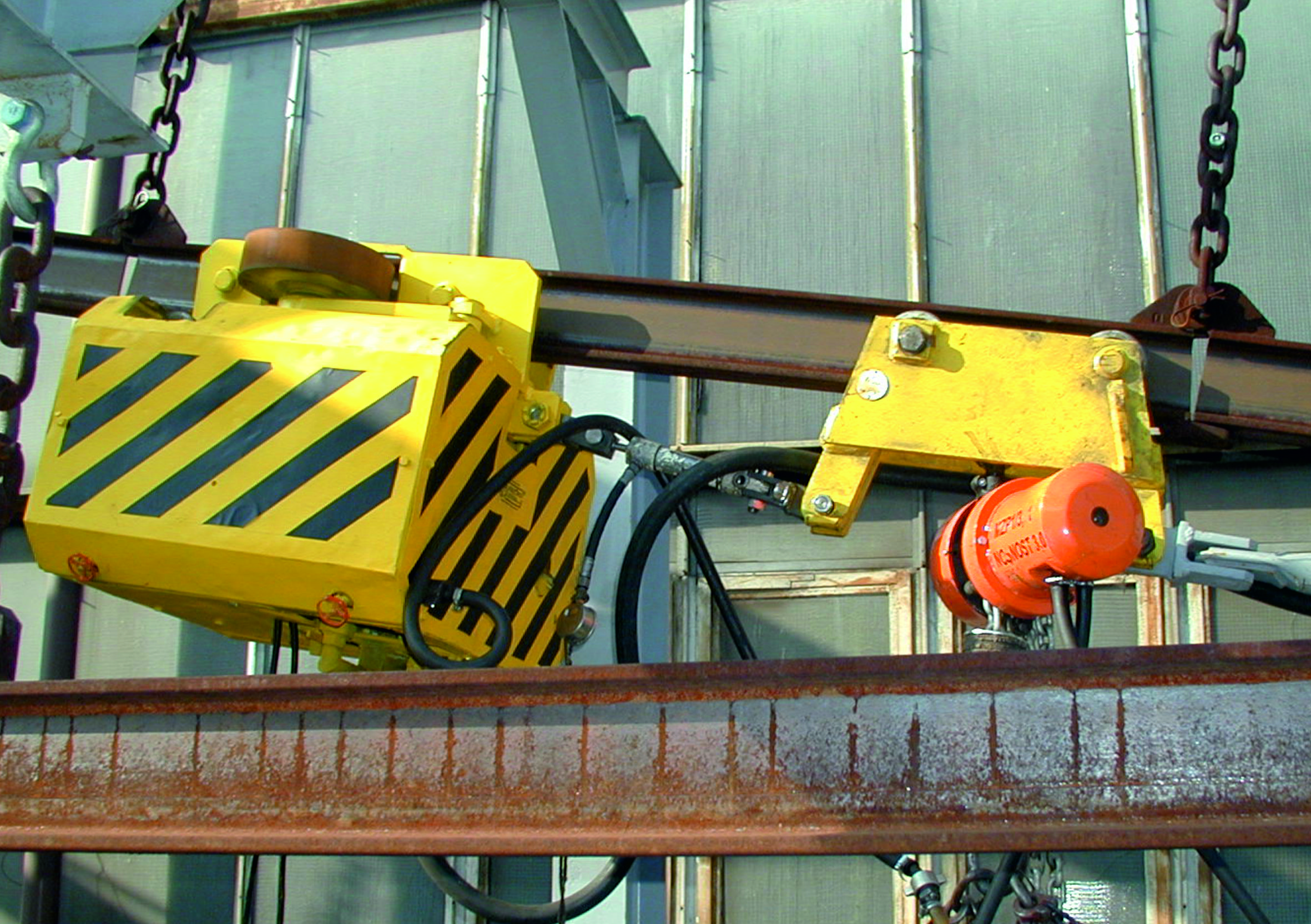 Tažná kočka je uložena na čtyřech nosných kolech. Dvojice hnacích kladek je poháněna vzduchovými motory přes šnekové převodovky a přitlačována pružinami ke stojině profilu závěsné dráhy. Ovládání ruční pomocí tlačítkového ovládače zavěšeného pod tažnou kočkou.