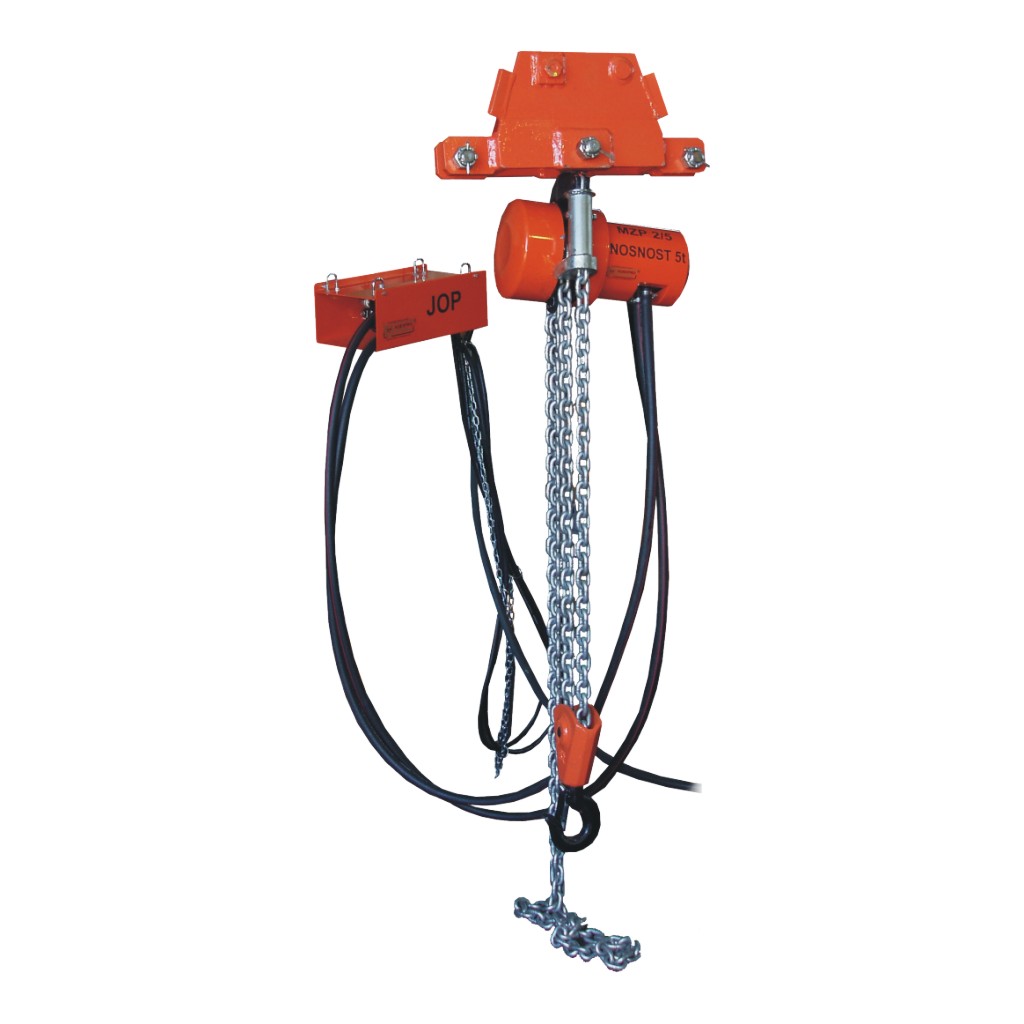 Stabilitu polohy břemene zajišťuje samočinná lamelová brzda v motoru, která udrží břemeno i v případech přerušení dodávky vzduchu. Spouštění břemene v případech přerušení dodávky vzduchu se provede pozvolným dotahováním matice M 8 na čelní straně motoru. Nosným prostředkem je vysokopevnostní článkový řetěz, opatřený hákem příslušné nosnosti s pojistkou.