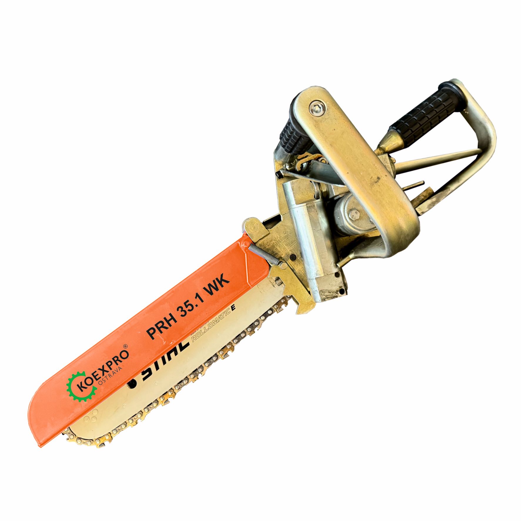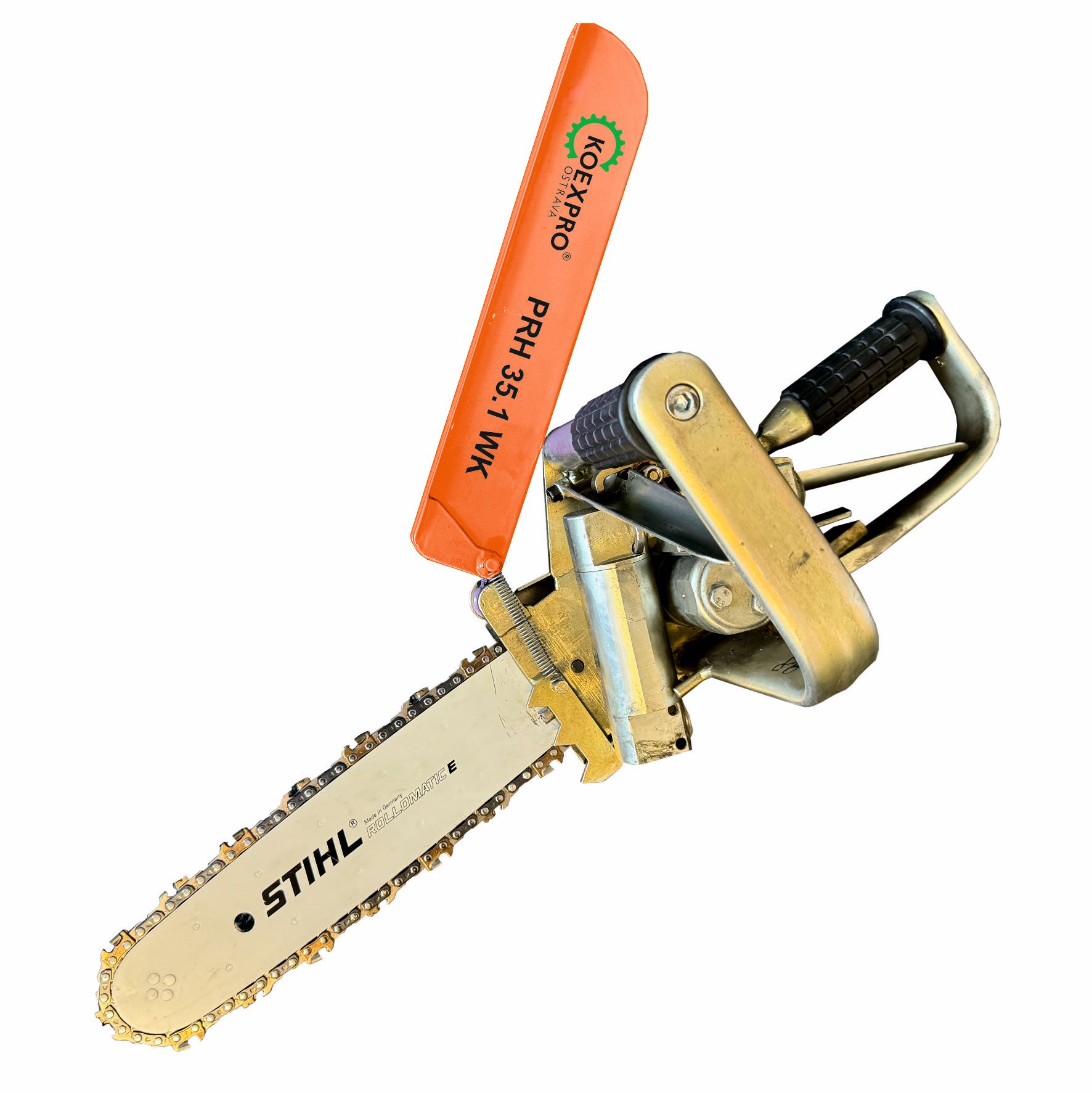 Pila řetězová hydraulická PRH 35.1 WK slouží jako nářadí ke snadnému řezání dřeva při ručním vedení, kde nahrazuje náročné ruční řezání dřeva, a je velmi praktická v pomocných pracích v dole a všude tam, kde je k dispozici centrální rozvod vodní emulze HFA min. 1%.