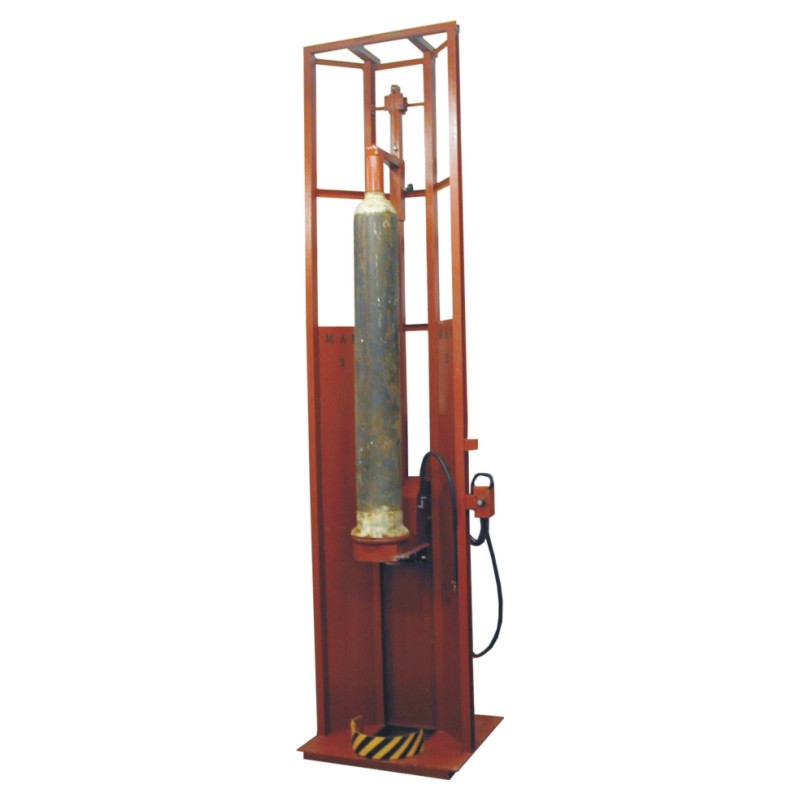 Opravovaná acetylenová láhev se postaví na disk pojízdného rotátoru, který se při zahájení práce nachází v úrovni podlahy a láhev se zajistí přes hrdlo horním držákem. Pomocí pneumatického obvodu se uvede do funkce pohon rotátoru a podle potřeby se láhev přizvedává pneumatickým válcem zvedacího mechanismu.