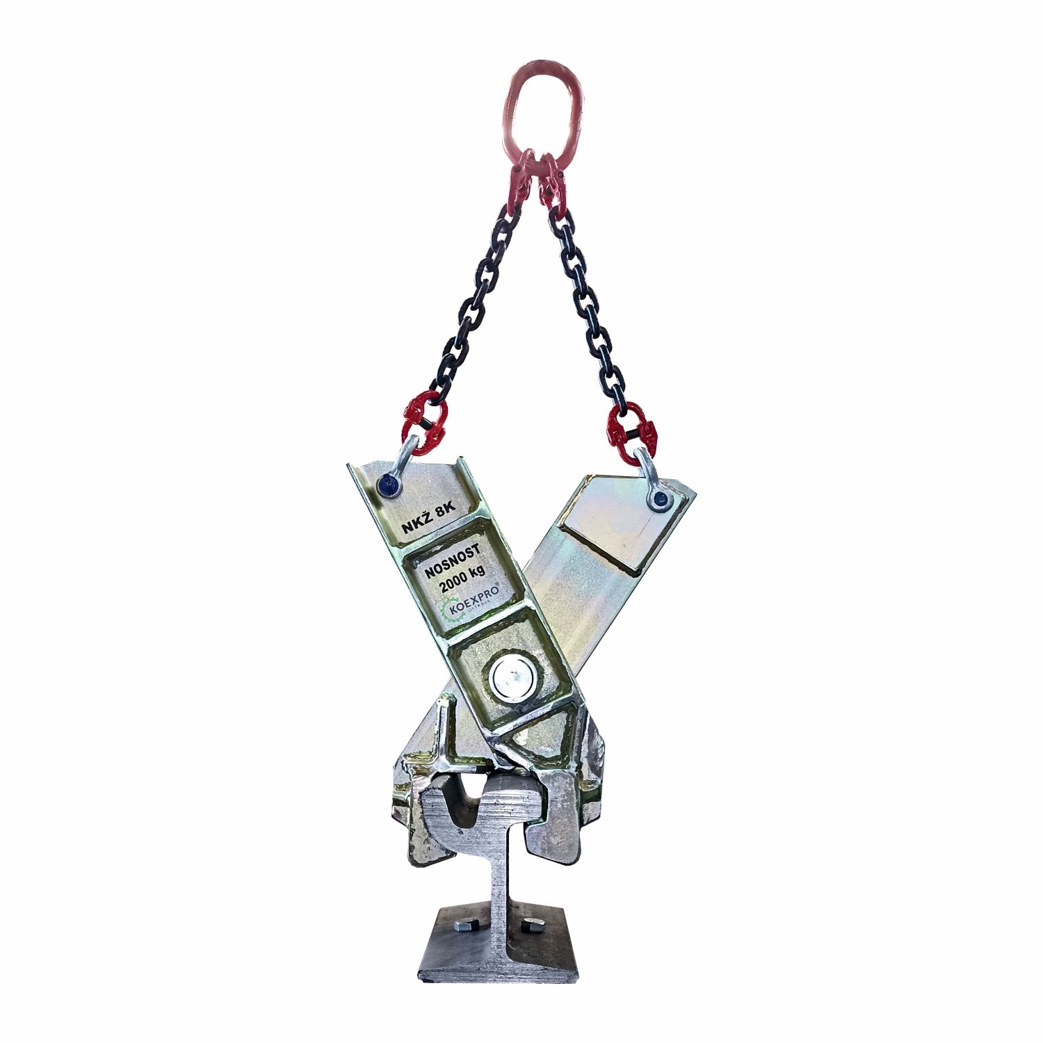 NOSIČE KOLEJNIC NK 8K A NKŽ 8K JSOU JEDNODUCHÉ, ALE MASIVNÍ KONSTRUKCE, KTERÁ UMOŽŇUJE BEZOBSLUŽNÝ PROVOZ PŘI MANIPULACI S KOLEJNICEMI. JSOU OPATŘENY DVĚMA ZÁVĚSY SE SPOJOVACÍM OKEM, KTERÉ PŘI ZATÍŽENÍ VYTVOŘÍ SVĚRNOU SÍLU.