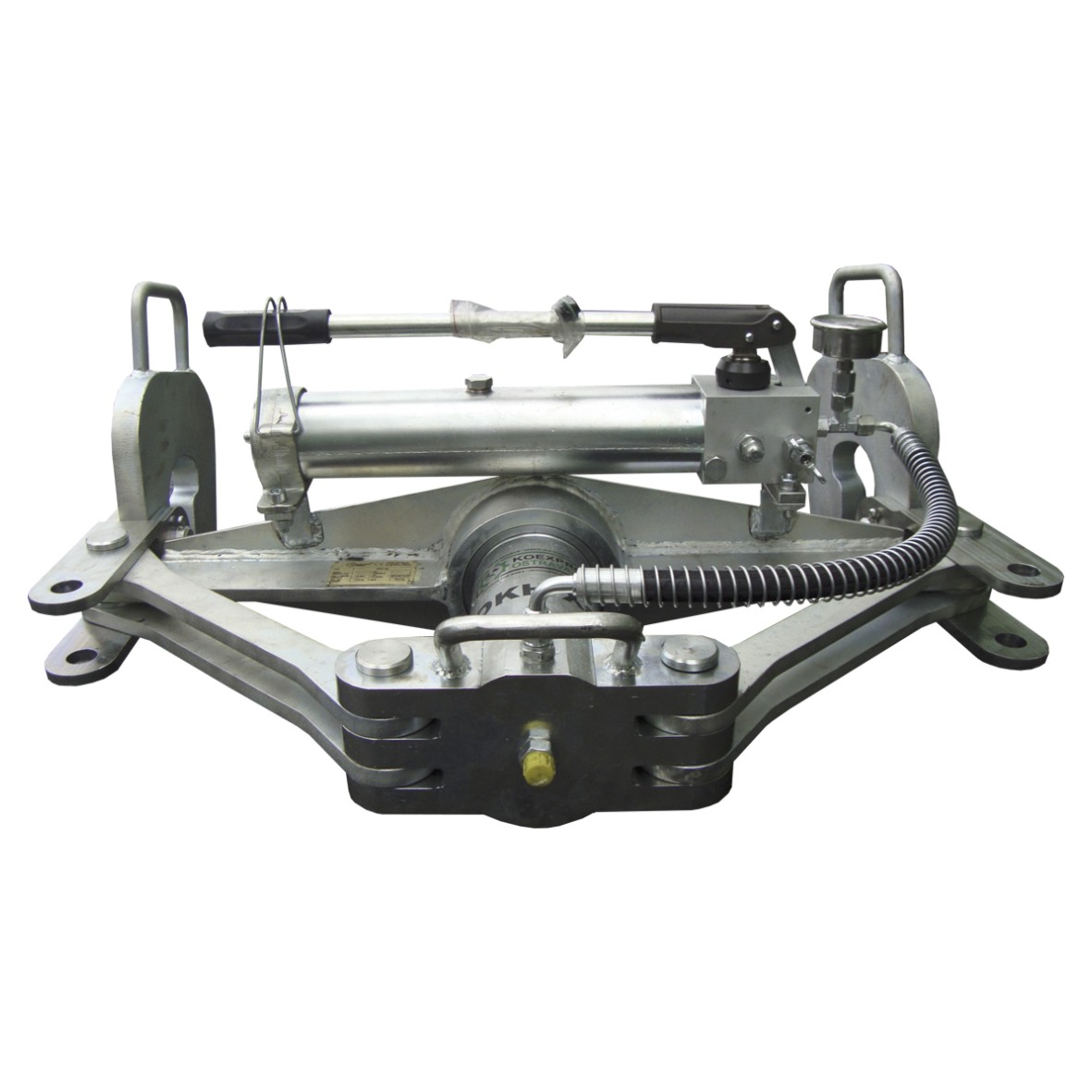 Ohýbačka se skládá z jednočinného lineárního hydromotoru s vratnou pružinou a vyměnitelnou opěrkou, rámu se závěsy a výměnných tažných třmenů. Připojení ke zdroji tlakové kapaliny je pomocí hadice s manometrem.