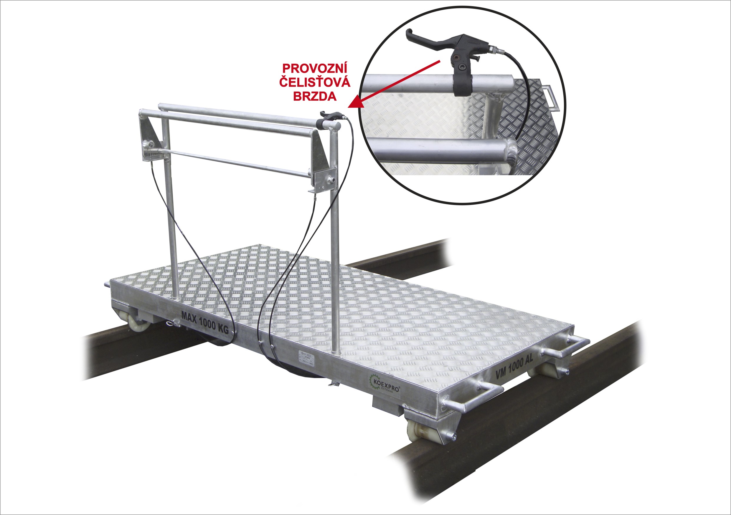Vozík manipulační VM 1000 AL má stejnou ložnou plochu, která je ale navíc vyztužená přídavnými hliníkovými profily. Je tedy určený pro nosnost max. 1 000 kg. Navíc je vozík vybaven provozní čelisťovou brzdou.