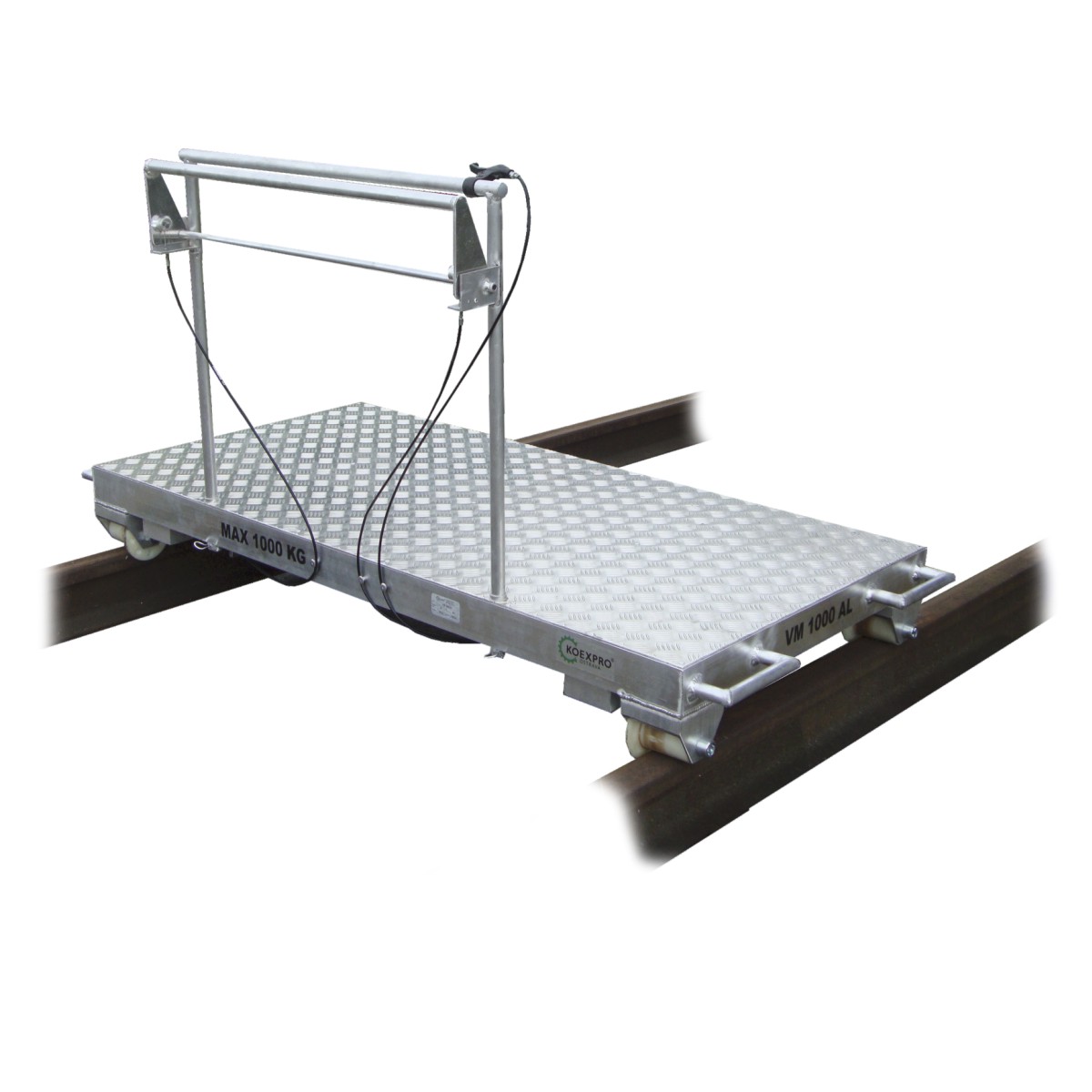Vozík manipulační VM 1000 AL má stejnou ložnou plochu, která je ale navíc vyztužená přídavnými hliníkovými profily. Je tedy určený pro nosnost max. 1 000 kg. Navíc je vozík vybaven provozní čelisťovou brzdou. Tato brzda slouží k přibrzďování vozíku při dopravě v úklonu. Dále je vozík standardně opatřen čtyřmi madly pro snadnou manipulaci.