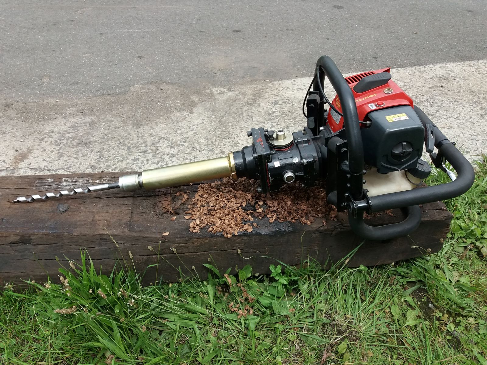 Vrtačka je poháněna lehkým vzduchem chlazeným dvoutaktním jednoválcovým benzínovým motorem, přes reverzační převodovku, která roztáčí vřeteno s vrtákem. Vrtačka je opatřena ochranným antivibračním rámem, který zároveň zajišťuje snadnou manipulaci. Vrtačka je vybavena plynulou regulací otáček a elektronickým vypínáním chodu motoru. Vrtačka se vyznačuje nízkou hmotností, optimálním výkonem, variabilním použitím v místech, kde není jiný zdroj energie, snadnou manipulací a snadnou obsluhou.