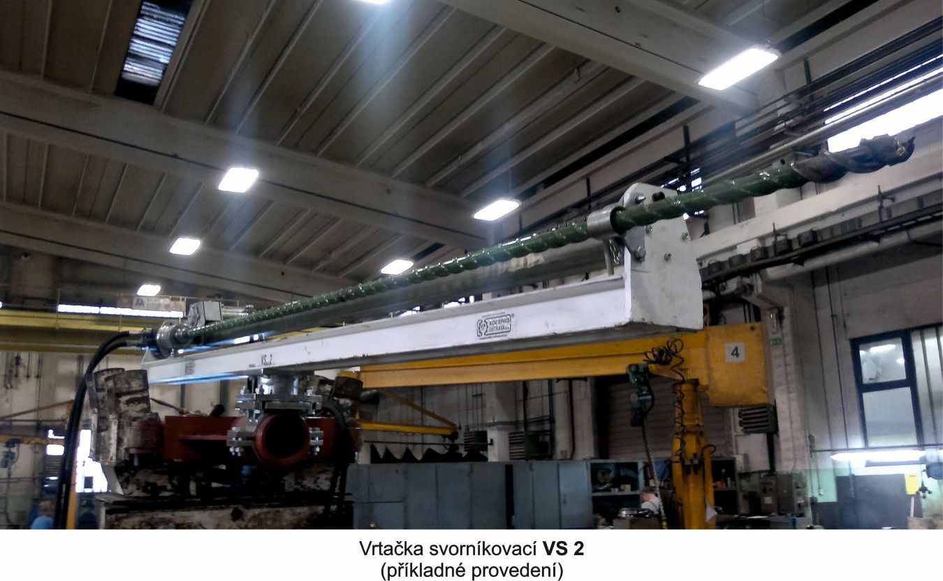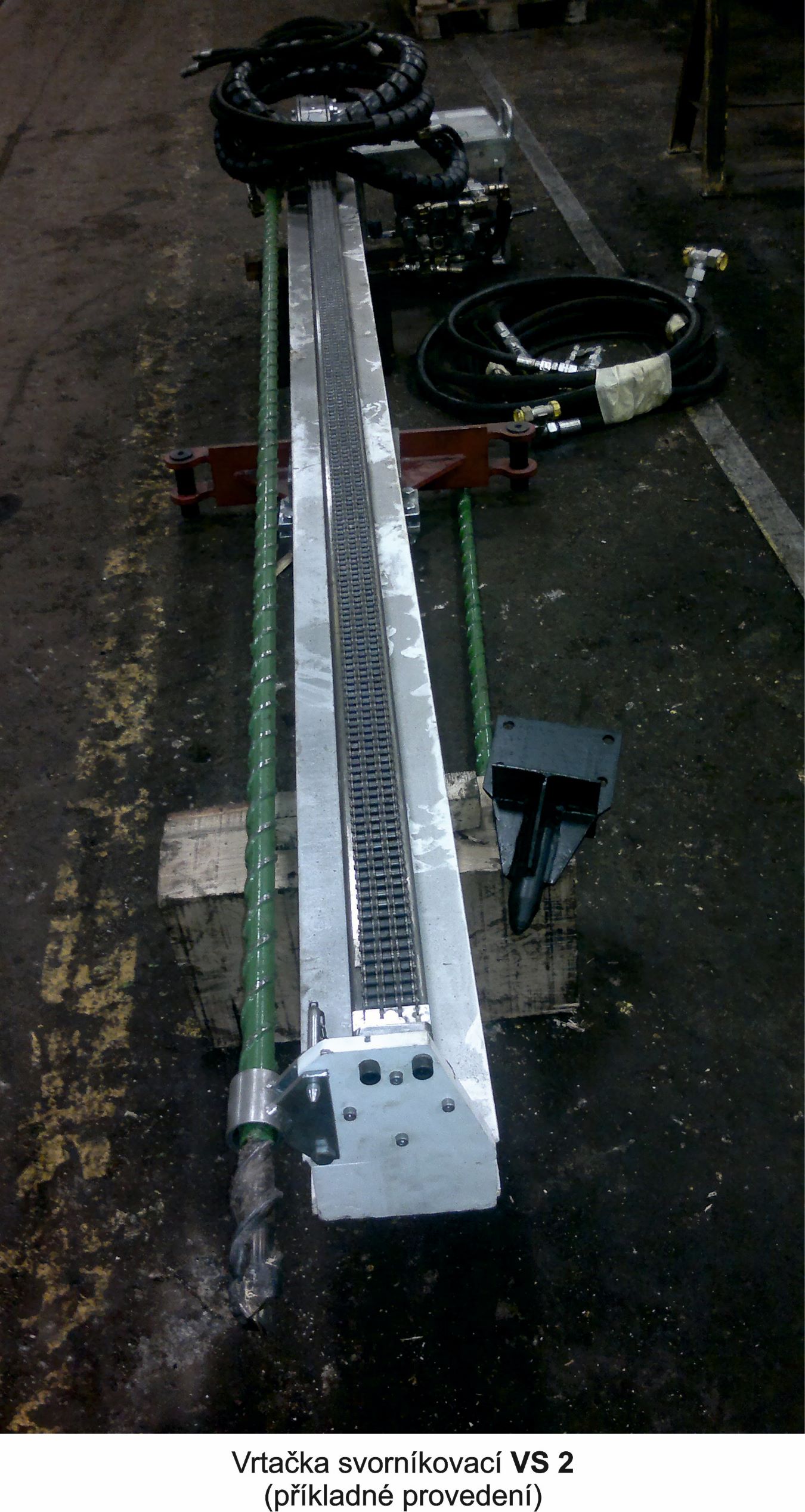 Vrtačka svorníkovací VS 2 (dále jen vrtačka) je určená zejména pro vrtání vývrtů v hlubinném hornictví pro následnou instalaci svorníkové výztuže nebo v podzemním stavitelství při obdobných aplikacích. Vzhledem ke své nízké hmotnosti a stavebnicovému uspořádání je vhodná k použití v těžko dostupných prostorech. Po rozepření lze vrtat vývrty v celém rozsahu od horizontální až do vertikální orientace.